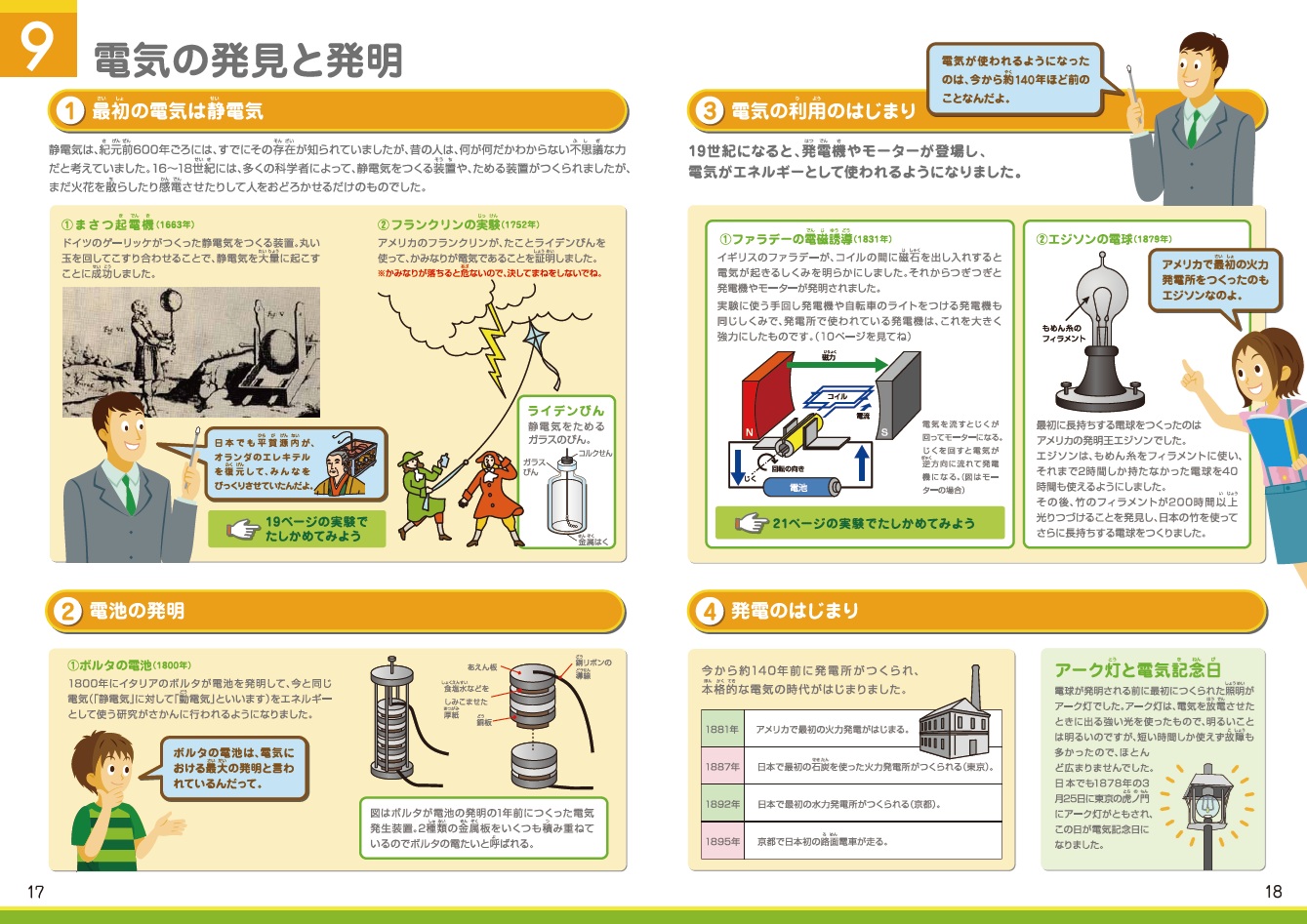 この画面は 「9 電気の発見と発明」 です。